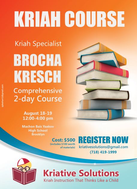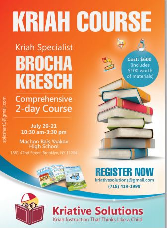 Kriah Course – Brooklyn, Summer 2015 05 Friday Jun 2015 Posted by kriativesolutions in Uncategorized ≈ Leave a comment Registration is now open for this summer’s kriah Course in Machon Bais Yaakov HS in Brooklyn. Date has been changed to accomodate demand.